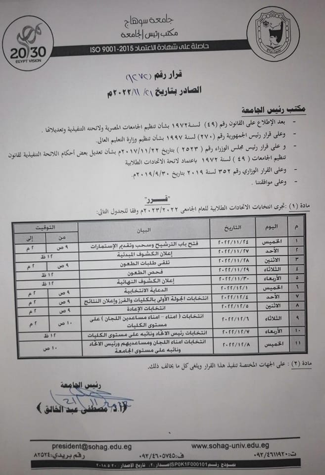 بواسطة amiraنشر على 22 نوفمبر، 2022 جدول انتخابات الاتحادات الطلابية للعام 2023/2022 تصفّح المقالات تأهيل كليه التربية النوعية في مسابقه المهرجان الفني الثالث الرسم على الاسفلت الي المرحلة الثانيةحصول كلية التربية النوعية على المركز الأول في مسابقه المهرجان الفني الثالث الرسم على الجدارية “