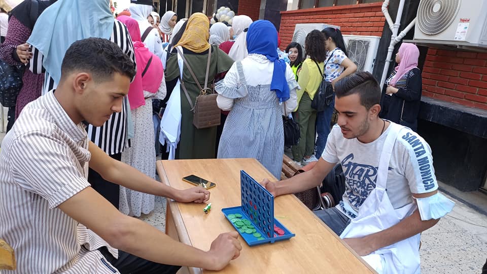 نظمت ادارة رعاية الشباب بالكلية معسكر استقبال الطلاب الجدد و القدامى بشارع الكلية وضم اليوم العديد من الفقرات والالعاب الترفيهية ، تنس الطاولة _ الشطرنج _ كونكت فور _ نشان الاسهم_ قوة الذراعين وتقديم الهدايا وكتاب الأنشطة الطلابية و الميداليات تذكارية ، وذلك بحضور الأستاذ الدكتور عميد الكلية و الاستاذ الدكتور وكيل الكلية لشئون التعليم و الطلاب.